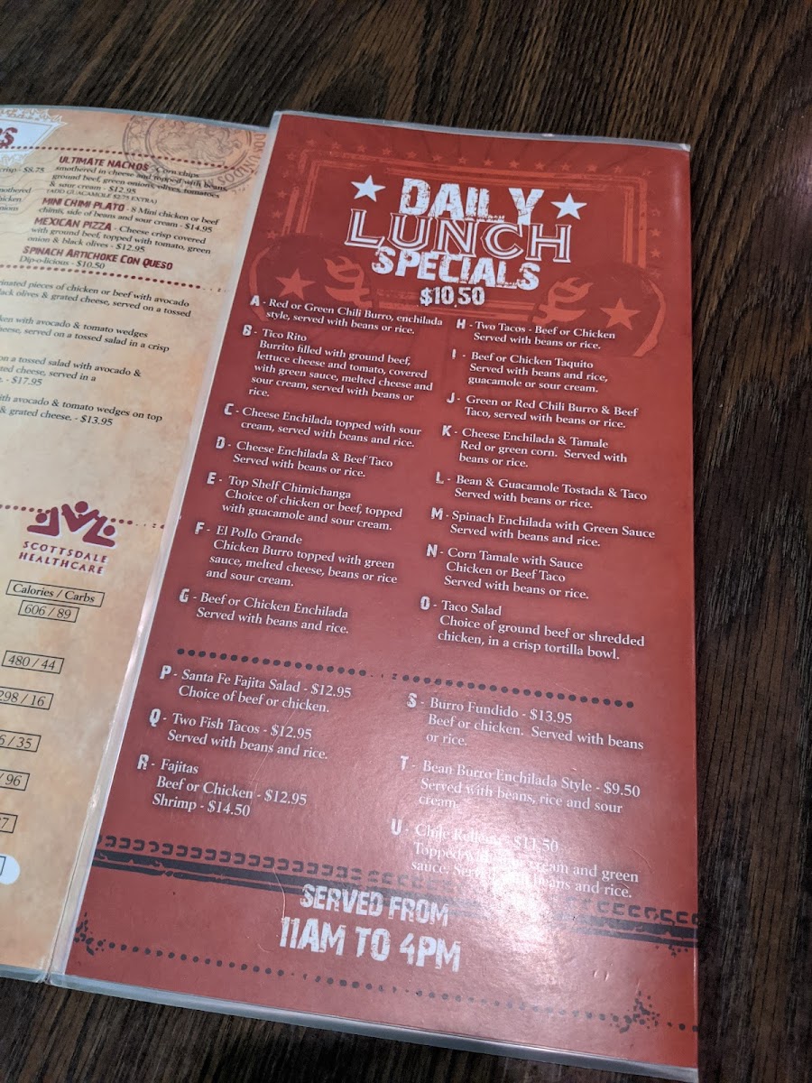 Bean Tostada, Beef Taco and Cheese Enchilada.